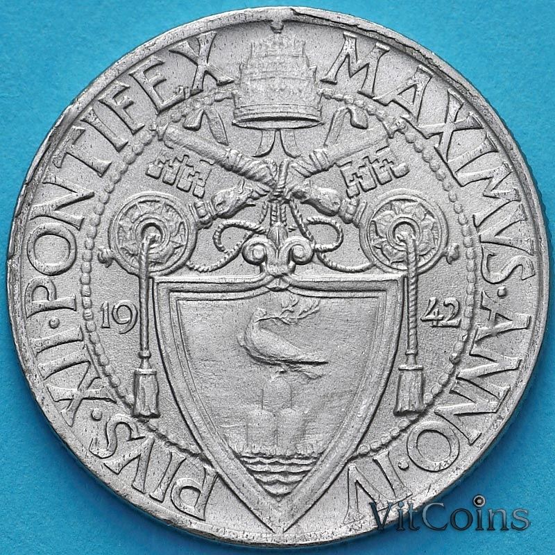 Монета Ватикан 50 чентезимо 1942 год. Папа Пий XI (1929 - 1938)