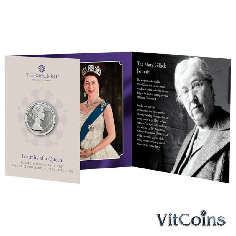 Юбилейная монета Великобритания 5 фунтов 2026 год. Серия «Портреты Королевы» (The Queen’s Portraits)