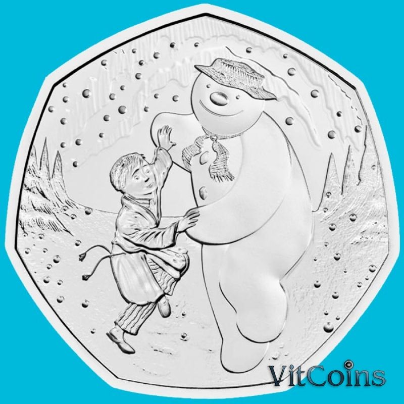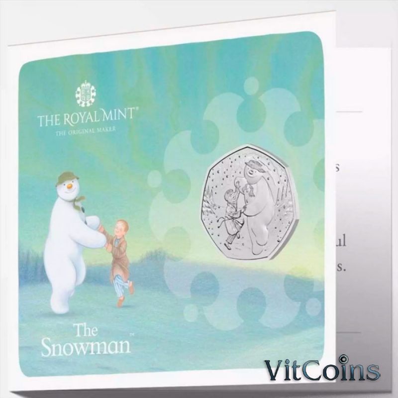 Юбилейная монета Великобритания 50 пенсов 2023 год. Снеговик. Блистер