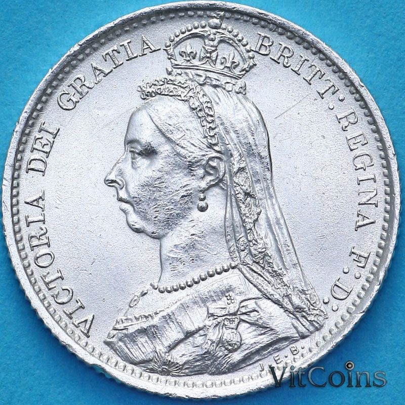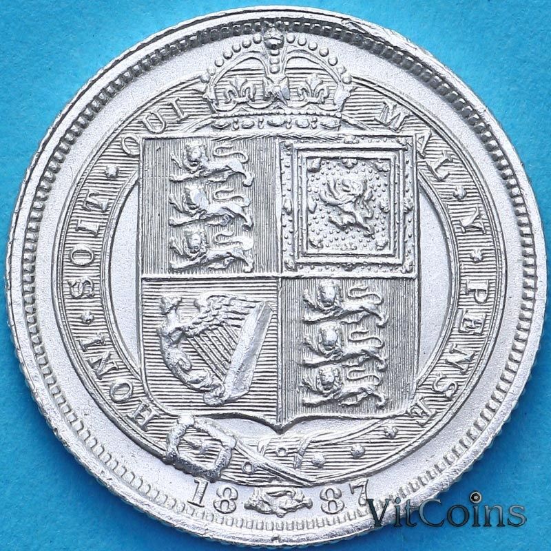 Юбилейная монета посвящённая золотому юбилею правления Королевы Виктории. В 1887 году монета данного типа чеканилась трёх разновидностей: 1. литеры J.E.B. (инициалы дизайнера Joseph Edgar Boehm) на аверсе над кантом; 2. J.E.B. на срезе бюста; 3. в слове "VICTORIA" литера "R" отчеканена поверх литеры "I" .