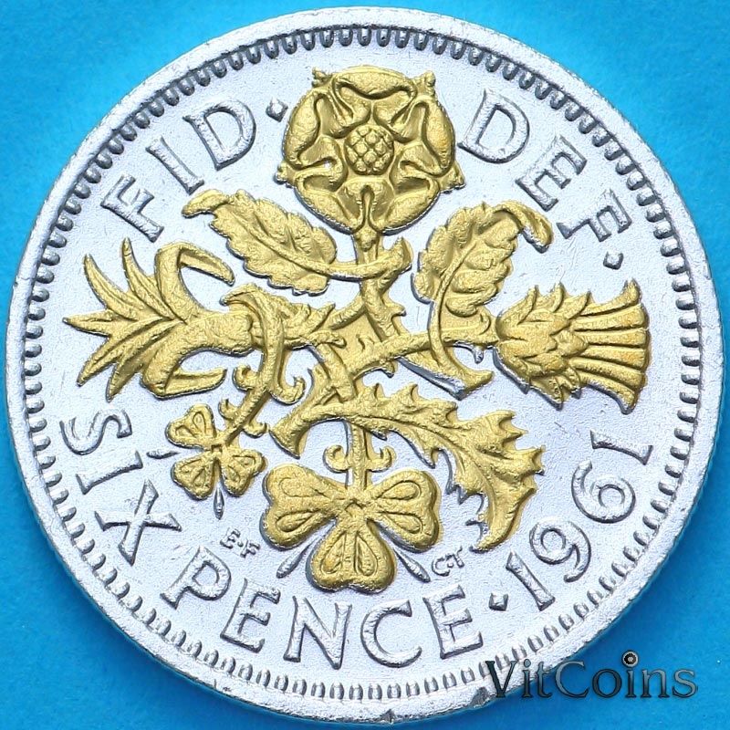 Великобритания 6 пенсов 1961 год. Королева Елизавета II