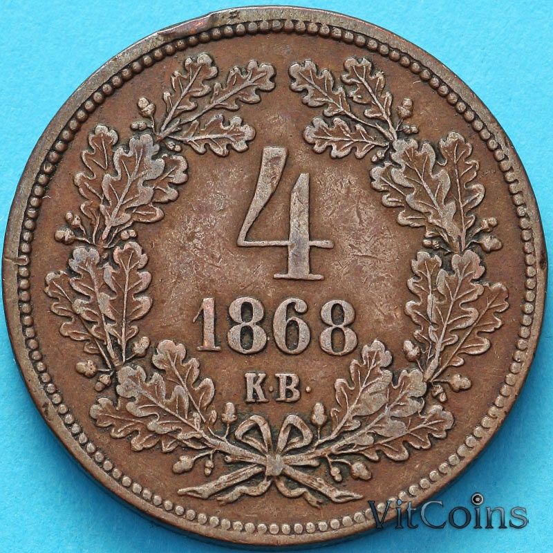 Монета Венгрия 4 крейцера 1868 год.