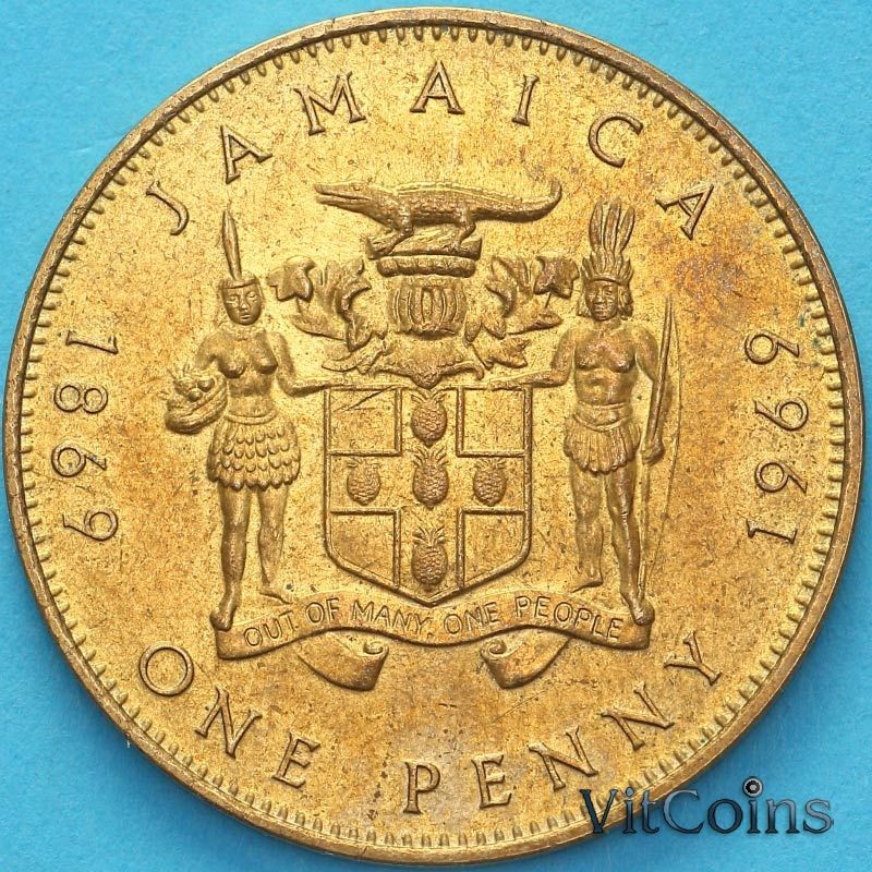 Юбилейная монета Ямайка 1 пенни 1969 год. 100 лет монетам Ямайки