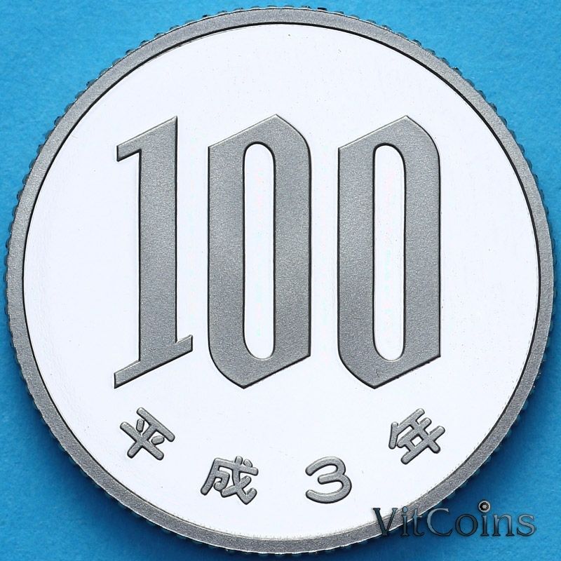 Монета Япония 100 йен 1991 год. Пруф