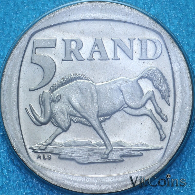Монета ЮАР 5 рандов 1994 год. Антилопа гну.