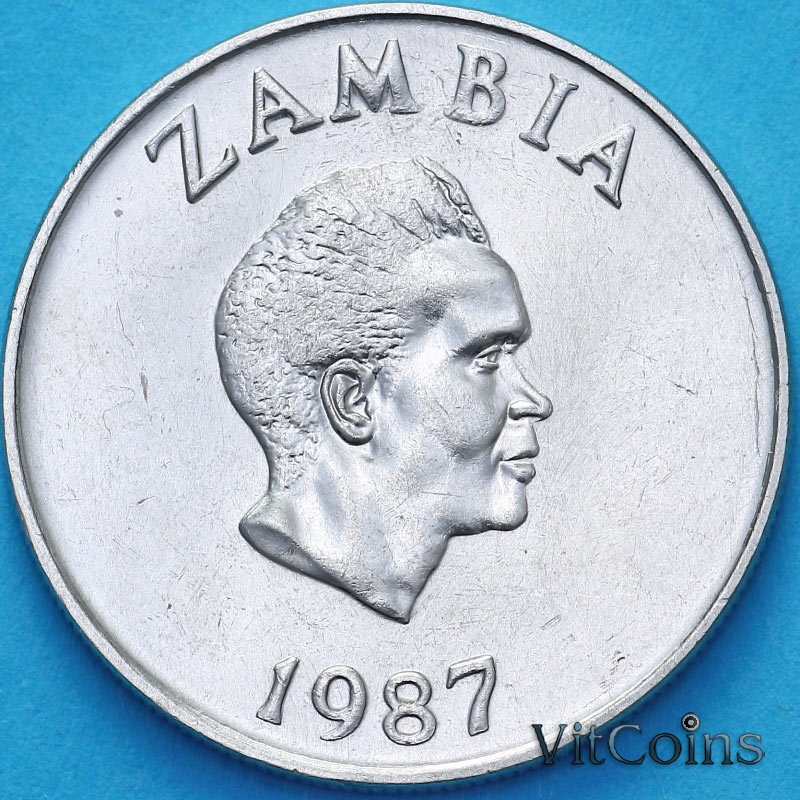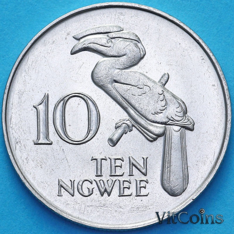 Монета Замбия 10 нгве 1987 год. Птица носорог.